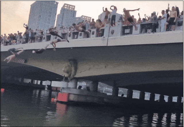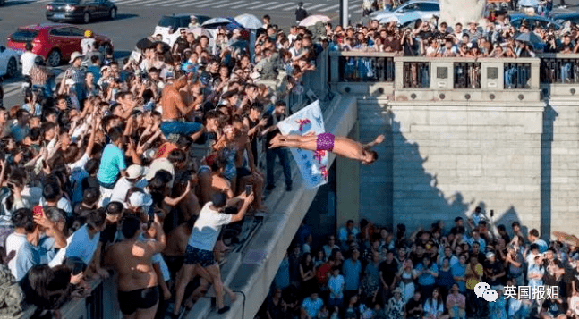 负责城市安全的单位就更头秃了,桥离水面本来就不低,七八米的高度下去,没有经验的人很容易受伤。