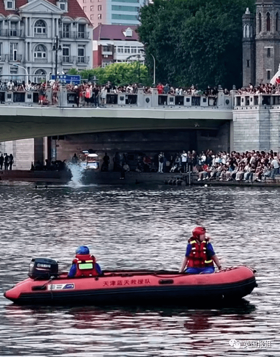 为了保证大家安全,天津也是上了好几道“保险措施”。随着围观人群和模仿者越来越多,救援小哥们赶到现场随时待命。