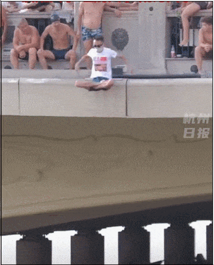 人群中怎么少得了显眼包,小哥自制“降落伞”挑战道具式跳水,不料半路失衡狼狈落下,牛顿的棺材板险些没压住。