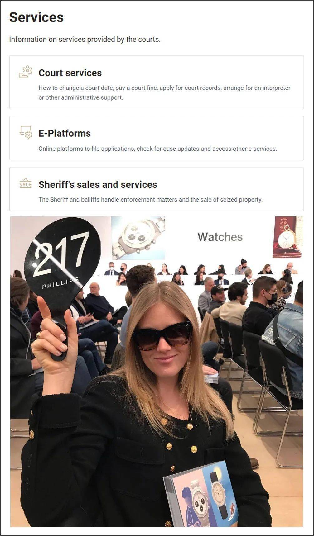 所以如果你受小红书博主影响都开始通过看直播庭审解乏扩充知识面的话,看看这样的线上法拍也挺受用。操作帮各位挖到了,新加坡这次破案所缴获的这些商品,未来会在新加坡法院官网公示(搜索 Singapore Courts),普通人如果感兴趣可以下滑找到Sheriff’s sale and services,并继续按步骤往下走,选择movable property,就可以看到一份很长的list,有很多品类以及相关价格和联系信息。