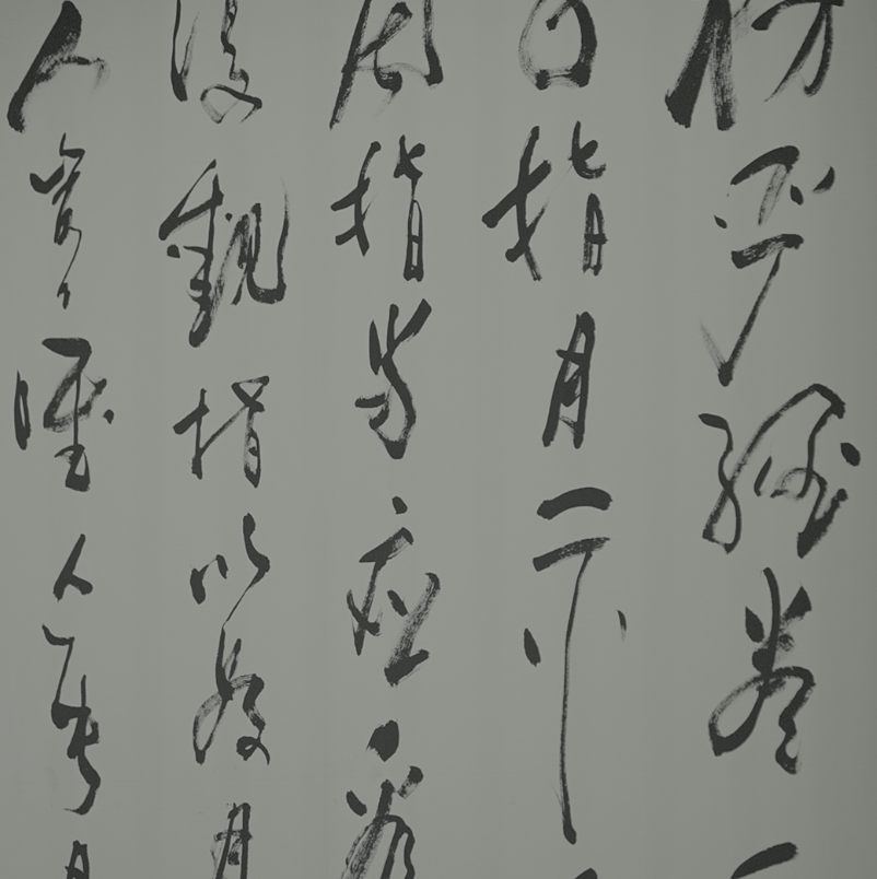 我本来是想写不同的书法填满这个空间,中间有一点点水墨画,后来林老师说你要尝试新的东西,不停地尝试。