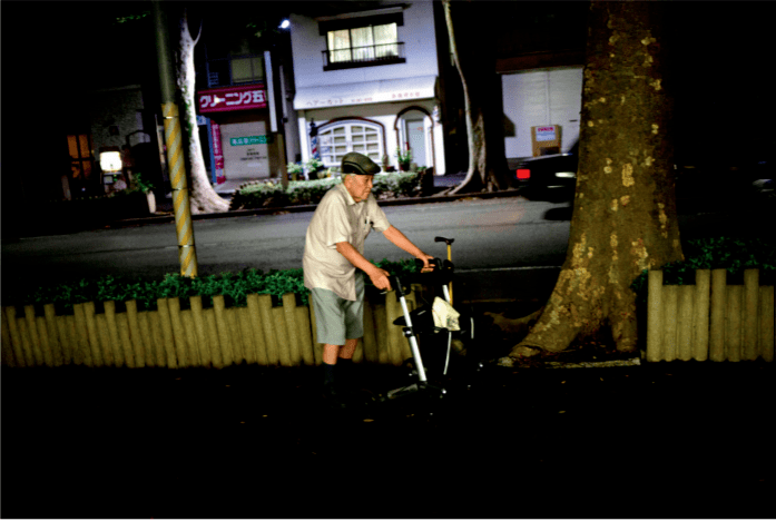 (83岁的木下良和双腿已经变得虚弱无力,出门时需借助一把椅子才能行走。他每周大概出门一次。他说 :“即使他们将我的名字刻在墓碑上,也没有人会拜访我的坟墓。” /Ko Sasaki)