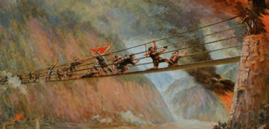 与此同时,敌人国民党军队迫近,枪声隆隆,似要将红军生吞活剥。红军唯一的出路,就是320里外的泸定桥。