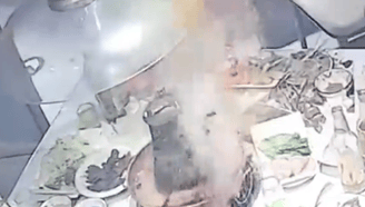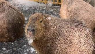 动物园漫天飘絮仿佛“下雪” 水豚淡定吃下